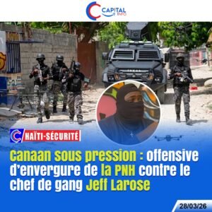 Aux premières heures de ce samedi, vers 4 heures du matin, la Police nationale d’Haïti (PNH), épaulée par la Task Force, a déclenché une opération d’envergure ciblant le chef de gang de Canaan, Jeff Larose. Selon des informations concordantes, des drones kamikazes ont été déployés et ont frappé sa résidence présumée, tandis que d’importants moyens…