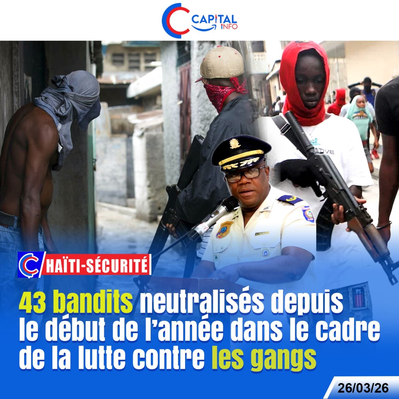 La Police Nationale d’Haïti (PNH) a présenté mercredi un bilan des opérations menées depuis janvier dans les départements de l’Ouest, du Centre et du Sud. Selon le porte-parole Garry Desrosiers, 43 présumés bandits ont été tués au cours de 32 interventions.